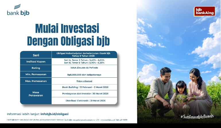 Dengan kombinasi peringkat yang kuat, indikasi kupon kompetitif, serta komitmen terhadap pembiayaan berkelanjutan, Obligasi Keberlanjutan Berkelanjutan I Tahap II Tahun 2026 menjadi bagian dari upaya bank bjb menghadirkan solusi investasi yang produktif dan berdampak bagi negeri.